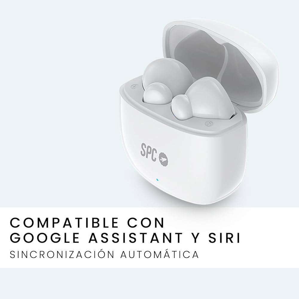 SPC Zion 2 Play – Auriculares inalámbricos Bluetooth para 28h de batería con varias cargas, ultracompactos, control táctil, manos libres, asistente de voz y estuche de carga USB C muy pequeño Blanco :